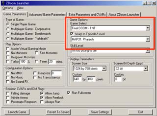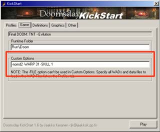 C『Doomsday KickStart』を実行して、[Profiels]タブの[Game]欄を[jDoom]にします。